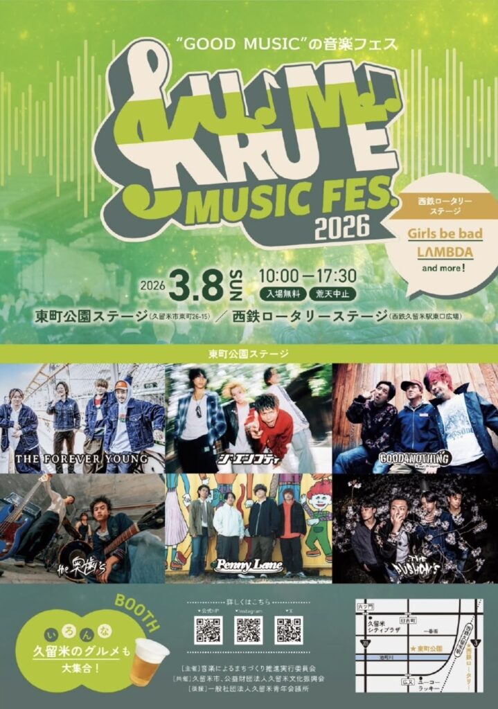 【2026年最新】「KURUME MUSIC FES.2026」開催!出演者・日程・会場・アクセス・見どころ完全ガイド【久留米市・イベント情報】